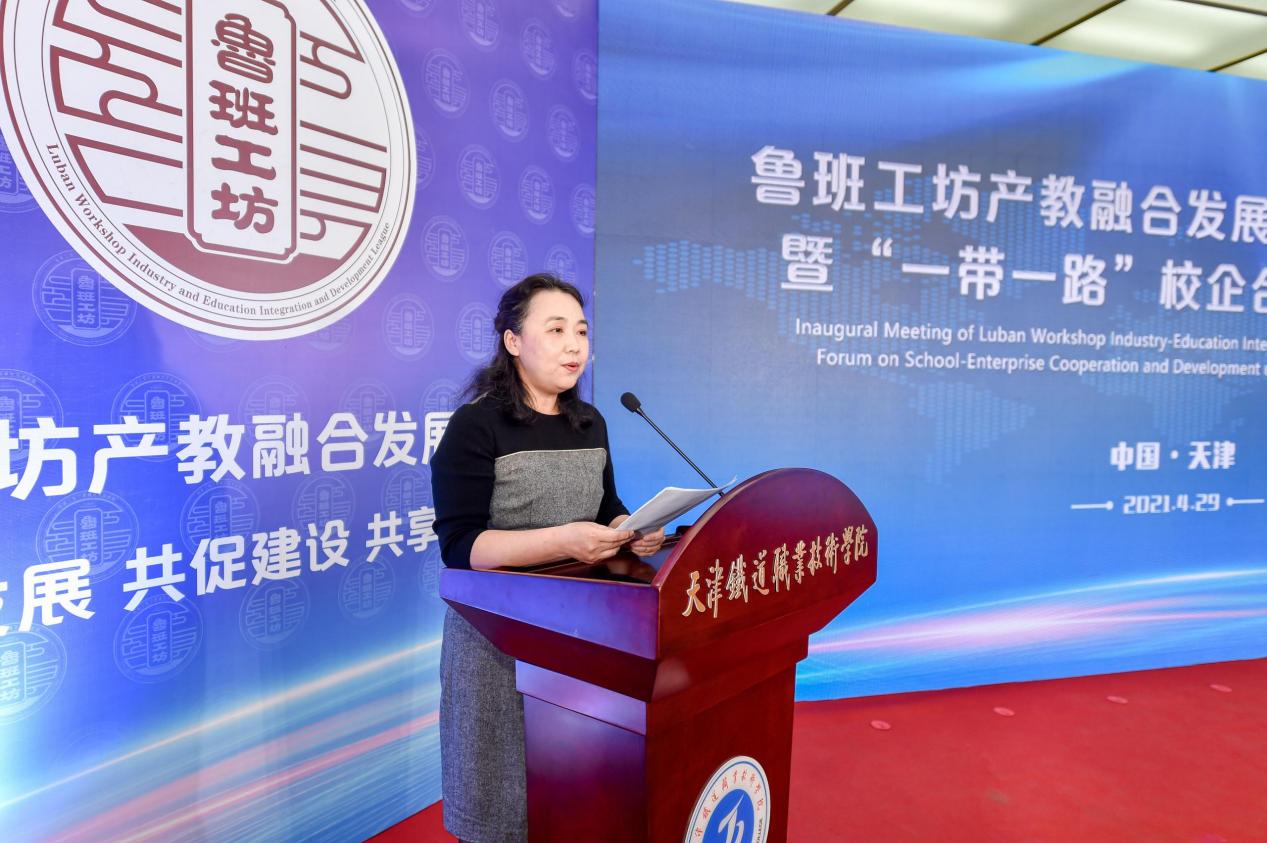 為貫徹落實習近平總書記關于職業教育的重要指示批示精神和在2018年中非合作論壇北京峰會上的講話精神,深化產教融合、校企合作,深入服務“一帶一路”建設,推動魯班工坊高質量可持續發展。2021年4月29日,“魯班工坊產教融合發展聯盟”成立大會暨“一帶一路”校企合作發展論壇在天津鐵道職業技術學院隆重舉行,32家合作企業和18所參建魯班工坊的職業院校成為聯盟首批成員。天津市人民政府副市長曹小紅出席活動,天津市教委、市人社局、市商務局、市教科院等相關單位同志參加了會議。學院作為副秘書長單位參加了此次會議,黨委書記汪坪和教學工作部部長李桂云參會。