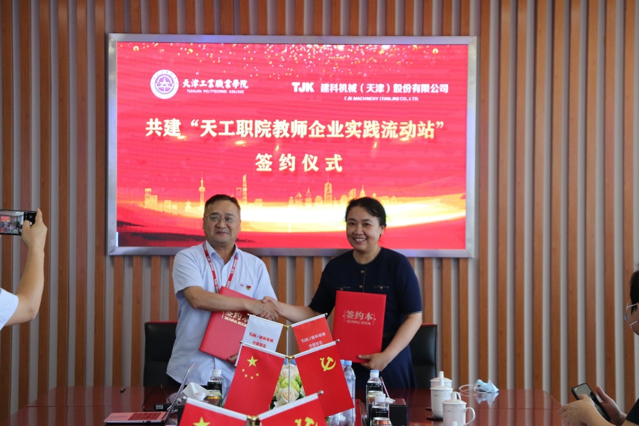在校企雙方與會(huì)人員的共同見證下,天津工業(yè)職業(yè)學(xué)院黨委書記汪坪與建科機(jī)械(天津)股份有限公司常務(wù)副總張新共同簽署了共建“天工職院教師企業(yè)實(shí)踐流動(dòng)站”協(xié)議書,共同為我院首個(gè)實(shí)踐流動(dòng)站落成揭牌,開啟我院全面建設(shè)高素質(zhì)專業(yè)化創(chuàng)新型教師隊(duì)伍的新征程。