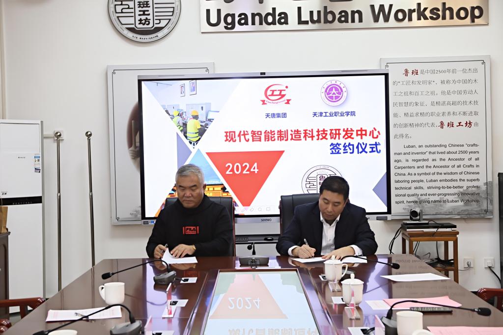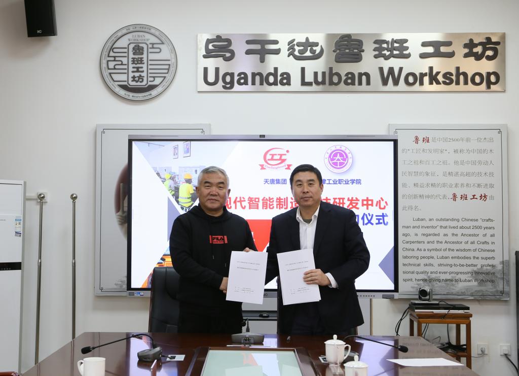 會議期間校企雙方達成共識,在今后的發展過程中,積極發揮烏干達魯班工坊實訓基地的作用,把烏干達魯班工坊的大門敞開的范圍更廣闊,把烏干達魯班工坊實訓基地的“課程講起來、培訓做起來、工作干起來、科研搞起來”,充分發揮實訓基地的作用。雙方就“烏干達魯班工坊現代智能制造科技研發中心”的建設簽署協議。
