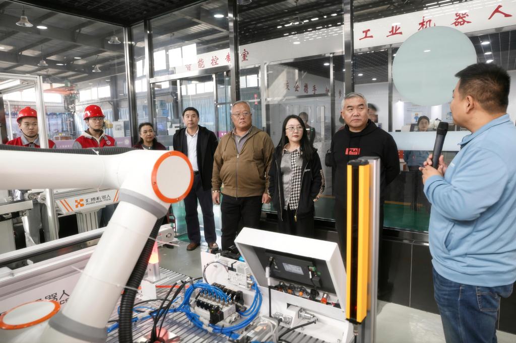 會后,天唐集團董事長一行參觀了學院軋鋼數字孿生生產工廠實訓室和智能制造生產車間。
