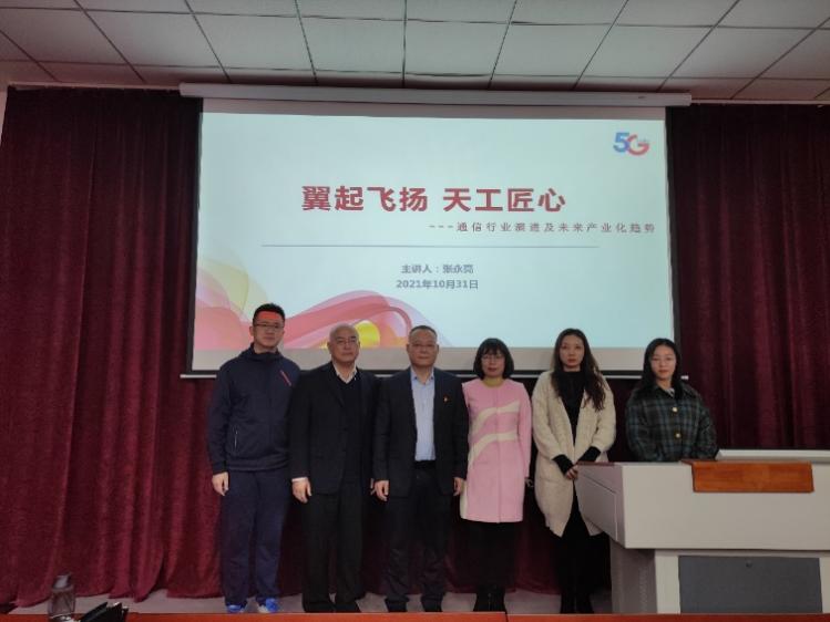 2021年10月31日下午,工信系結合黨史學習教育深入開展“我為群眾辦實事”活動,提升現代通信技術專業新生對專業的認知,特別邀請天津電信北辰分公司黨支部書記、總經理,天津市勞動模范張永亮同志來校為新同學做“翼起飛揚 天工匠心”的主題講座,以行業專家的視角,對通信技術的演進及未來產業化發展趨勢進行精彩的解讀,為新同學們指明今后學習、工作的方向。