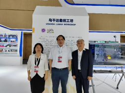 教育部職業(yè)教育與成人教育司副司長(zhǎng)林宇、天津市魯班工坊研推中心副主任楊延、魯班工坊建設(shè)聯(lián)盟理事長(zhǎng)劉斌參觀烏干達(dá)魯班工坊展區(qū)