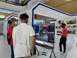 烏干達(dá)魯班工坊展區(qū)深受各方領(lǐng)導(dǎo)和同仁歡迎,還迎來(lái)非洲留學(xué)生的參觀,他們對(duì)VR漫游體驗(yàn)十分感興趣,親身感受虛擬煉鋼生產(chǎn)現(xiàn)場(chǎng),表示3D動(dòng)畫虛擬仿真技術(shù)十分有趣。