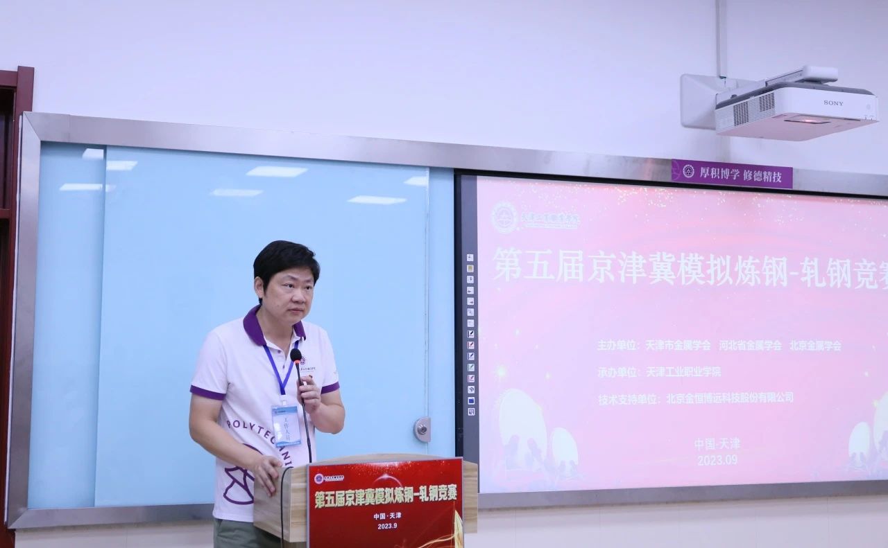 2023年9月8日,由天津市金屬學(xué)會(huì)、河北省金屬學(xué)會(huì)、北京金屬學(xué)會(huì)聯(lián)合主辦,天津工業(yè)職業(yè)學(xué)院承辦的2023年第五屆京津冀模擬煉鋼-軋鋼競(jìng)賽在天津工業(yè)職業(yè)學(xué)院開幕。本次比賽共有來自京津冀企業(yè)、高等院校、職業(yè)院校的10支代表隊(duì),54名選手參賽。天津市金屬學(xué)會(huì)副理事長兼秘書長王振武、河北省金屬學(xué)會(huì)副理事長兼秘書長劉義、北京金屬學(xué)會(huì)常務(wù)副秘書長邱冬英,天津工業(yè)職業(yè)學(xué)院黨委書記汪坪、院長孔維軍、黨委副書記柴娜娜、副院長劉江、副院長張秀芳,北京金恒博遠(yuǎn)科技股份有限公司副總經(jīng)理?xiàng)钔鱿_幕式。開幕式由天津工業(yè)職業(yè)學(xué)院教務(wù)部主任譚起兵主持。