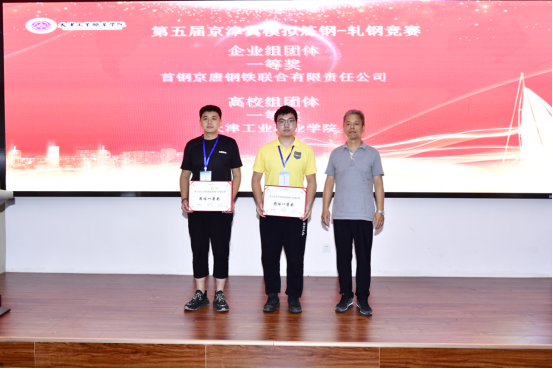 隨后進(jìn)入大賽閉幕式,本屆大賽共評(píng)選出煉鋼單項(xiàng)獎(jiǎng)17名,軋鋼單項(xiàng)獎(jiǎng)16名,團(tuán)體獎(jiǎng)6名,大賽突出貢獻(xiàn)獎(jiǎng)2名。京津冀三地金屬學(xué)會(huì)和學(xué)院領(lǐng)導(dǎo)出席大賽閉幕式并為獲獎(jiǎng)團(tuán)體和個(gè)人頒獎(jiǎng)。我院選手在本次大賽中表現(xiàn)出色,分別斬獲了高校組團(tuán)體一等獎(jiǎng)和軋鋼單項(xiàng)一等獎(jiǎng),學(xué)院獲得大賽突出貢獻(xiàn)獎(jiǎng)。