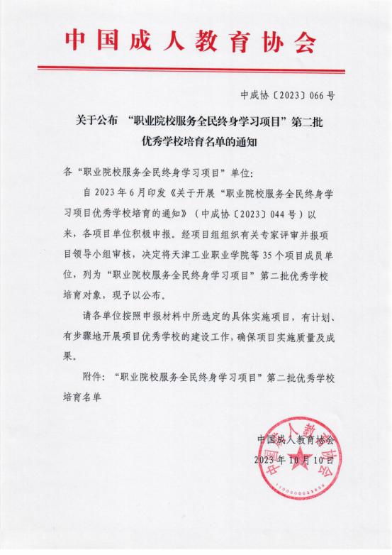 為深入貫徹落實黨的二十大提出的“推進教育數字化,建設全民終身學習的學習型社會、學習型大國。”等會議精神,以及中共中央辦公廳、國務院辦公廳印發的《關于推動現代職業教育高質量發展的意見》、《教育部等九部門關于職業教育提質培優行動計劃(2020-2023年)的通知》等文件精神,促進高質量建設服務全民終身學習的現代教育體系,建設學習型社會。繼續教育中心于2023年4月組織申報中國成人教育協會的“職業院校服務全民終身學習項目”,6月獲批實驗校稱號。2023年10月在全國530余所實驗校中獲得“職業教育助力鄉村振興”項目優秀學校培育對象。
