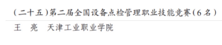 我院機械工程系王亮教師在人社部2021年全國行業(yè)職業(yè)技能競賽第二屆全國設備點檢管理職業(yè)技能競賽職工組“機械設備點檢員”項目獲得第二名好成績。經(jīng)過兩年的評選最終榮獲“全國技術能手”榮譽稱號。