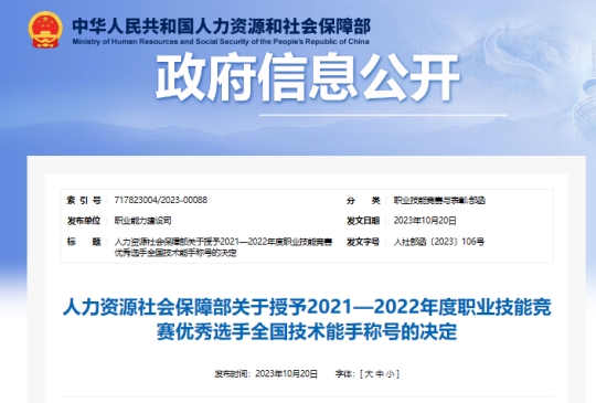 近日,人力資源和社會保障部發(fā)布《關于授予2021—2022年度職業(yè)技能競賽優(yōu)秀選手全國技術能手稱號的決定》。“全國技術能手”榮譽稱號每兩年評選一次,是面向技能人才最高的政府獎項之一,受到表彰的高技能人才均是全國技能人才中的杰出代表。