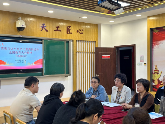 在研討會上,首先由何樹傳達了全國教育大會的主要精神,并解析了習近平總書記關于教育強國建設的重要論述。思政課部教師們圍繞如何深入學習和貫徹全國教育大會精神展開了熱烈研討。李玉楨、楊君等多位教師代表結合自身的教育教學實踐,分享了近期學習心得與感悟。她們表示,要深刻領會講話精神,努力踐行教育家精神,以更加飽滿的熱情投入到教書育人工作中。