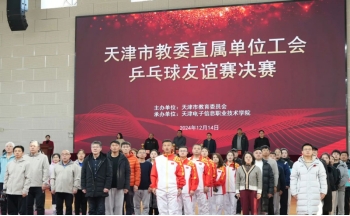 12月14日由天津市教育委員會直屬單位工會主辦,天津電子信息職業技術學院承辦的天津市教委直屬單位工會乒乓球友誼賽決賽成功舉辦。本次比賽吸引了來自市教委直屬單位13支隊伍近100名乒乓球愛好者參與。市教育兩委二級巡視員王戈、電子信息學院黨委書記徐瑞成、市教育兩委巡察辦主任劉衛、辦公室主任劉冰、電子信息副校長高江,市教委直屬單位工會主席、市教育兩委審計處處長淡春江出席開幕式。
