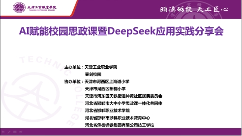 3月14日,天津工業職業學院思政課部邀請壹刻校園聯合津冀多所大中小學和街道開展“AI賦能校園思政課暨DeepSeek應用實踐”教研培訓會。天津市河西區上海道小學、天津市河西區梧桐小學、天津市河東區天鐵街道神黃社區居民委員會、河北省邯鄲市大中小學思政課一體化共同體、河北省邯鄲職業技術學院馬克思主義學院、河北省邯鄲市涉縣職業技術教育中心、河北省承德鋼鐵集團有限公司技工學校以及天津工業職業學院思政課全體教師參加此次教研培訓會。