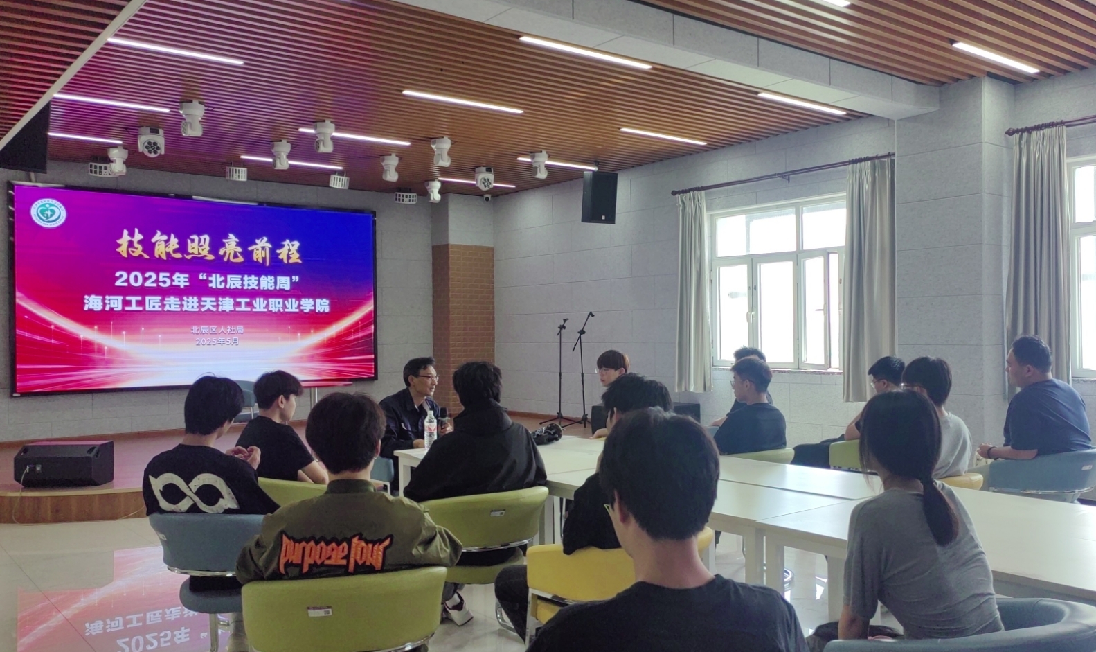 為展示學院服務區域經濟社會發展新成果,營造全社會關心支持職業教育發展的良好氛圍。5月14日,作為職業教育活動周同期活動,天津工業職業學院聯合北辰區人社局開展了“樂業北辰 職引未來”北辰區公共就業服務進校園專場活動。