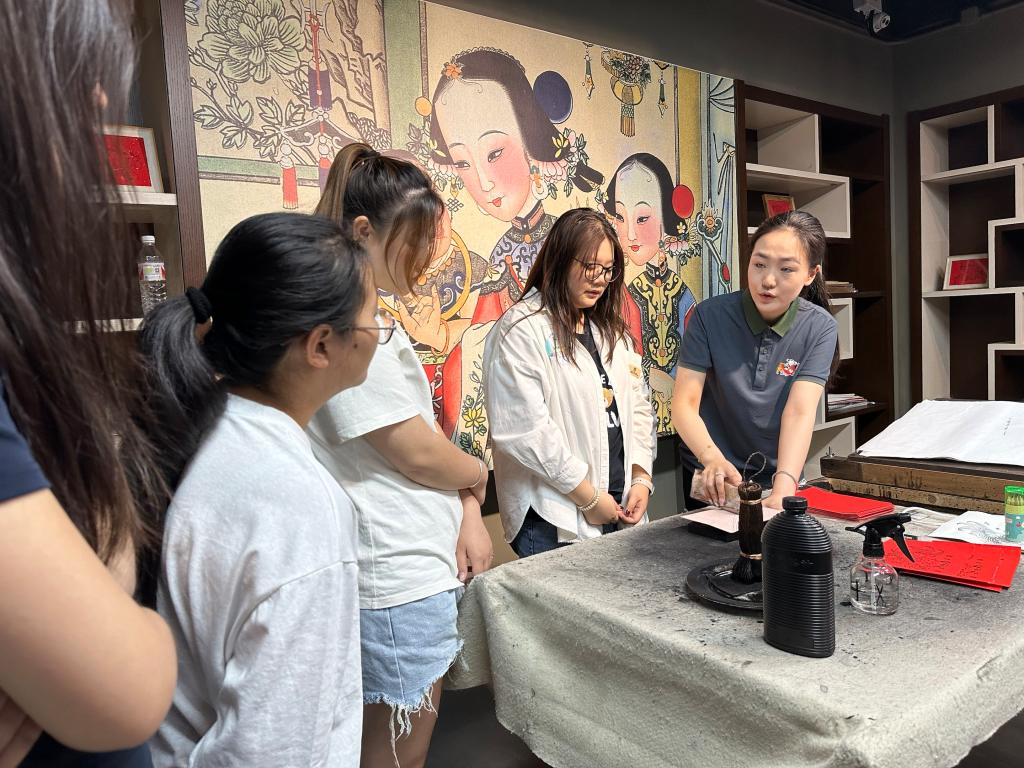 活動期間,師生在專業講解員引導下,依次參觀楊柳青民俗館、石家大院等文化場館,系統了解古鎮民俗文化、大院建筑特色、年畫藝術內涵、趕大營歷史淵源及運河文化脈絡。師生通過探訪平津戰役天津前線指揮部舊址,觀摩珍貴文物史料、聆聽革命歷史講解,接受了紅色主題教育,深切體悟古鎮承載的歷史厚重感。活動特別設置石家大院戲樓文化體驗環節,通過沉浸式非遺探訪與互動實踐,多維度感知天津傳統文化魅力。