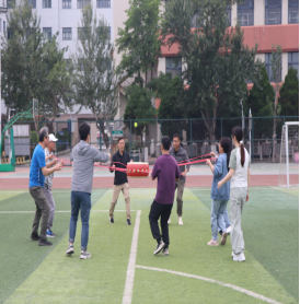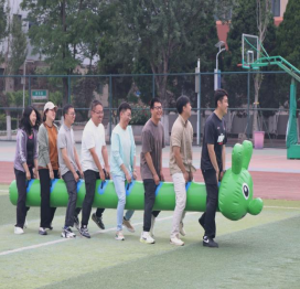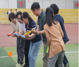 隨后趣味比賽項目火熱開啟,不倒森林、能量傳輸、同心鼓、毛毛蟲四項活動現場氣氛熱烈。在不倒森林比賽中,8 名隊員默契配合,小心翼翼地傳遞細管;能量傳輸環節,隊員們全神貫注,確保彈力球順利傳輸;同心鼓比賽里,大家齊心協力,讓網球一次次高高彈起;毛毛蟲項目中,隊員們喊著口號,步伐一致地沖向終點。賽場上,加油聲、歡笑聲此起彼伏,老師們在協作中釋放壓力,增強團隊凝聚力,增進了彼此間情誼。