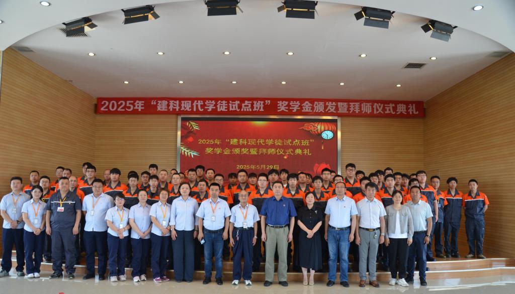 2025年5月29日上午9點,天津工業(yè)職業(yè)學(xué)院2025年“建科現(xiàn)代學(xué)徒制試點班”獎學(xué)金頒發(fā)暨新學(xué)員拜師典禮在建科智能裝備制造(天津)股份有限公司隆重舉行。學(xué)校黨委副書記、院長楊理連帶隊,機械工程系、教務(wù)部、校企合作和對外交流辦公室主要負(fù)責(zé)人出席;建科智能常務(wù)副總經(jīng)理張新出席,企業(yè)人力資源行政部、生產(chǎn)管理部、電氣管理部、技術(shù)管理部、科技發(fā)展中心主要負(fù)責(zé)人及一線師傅和學(xué)徒等共計100余人參加。