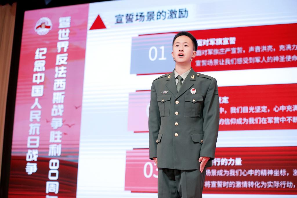 5月29日,在天津市教育委員會、中共天津市委宣傳部、天津警備區政治工作局、天津警備區動員局聯合主辦的紀念中國人民抗日戰爭暨世界反法西斯戰爭勝利80周年天津市大中小學“愛我國防”演講比賽決賽中,由黨委學生工作部(學生管理部)選拔、指導的退役大學生士兵柳澤域榮獲大賽三等獎。