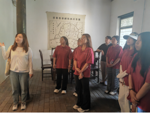 研學首站,師生們懷著崇敬之情走進八路軍一二九師紀念館。在司令部舊址斑駁的院落、珍貴的文物前,在將帥們運籌帷幄的赤岸村,歷史的畫卷徐徐展開。講解員深情講述“九千將士進涉縣,三十萬大軍出太行”的壯闊史詩,劉鄧大軍不畏艱險、浴血奮戰的革命精神深深震撼了每一位學子。他們駐足沉思,重溫入團誓詞,在紅色沃土上汲取信仰力量,厚植家國情懷。