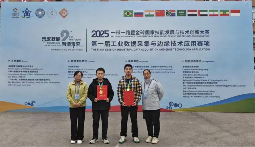 金秋十月,捷報(bào)頻傳。在剛剛落幕的2025一帶一路暨金磚國家技能發(fā)展與技術(shù)創(chuàng)新大賽第一屆工業(yè)數(shù)據(jù)采集與邊緣技術(shù)應(yīng)用賽項(xiàng)中,天津工業(yè)職業(yè)學(xué)院工業(yè)與信息化系教師付曉艷、唐繼英帶領(lǐng)工業(yè)互聯(lián)網(wǎng)專業(yè)學(xué)生陳海峰及電氣專業(yè)學(xué)生李旺普組成的參賽團(tuán)隊(duì),憑借扎實(shí)的技術(shù)功底、默契的團(tuán)隊(duì)協(xié)作與穩(wěn)定的臨場發(fā)揮,從來自全國的100余支參賽隊(duì)伍中脫穎而出,一舉摘得一等獎(jiǎng)桂冠,為學(xué)院再添殊榮。