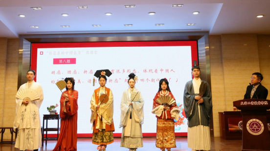 李靖圍繞非遺文化給現場的師生上了一堂生動的“微課”,天津工業職業學院大學生現場展示了清朝時期的點翠飾品。